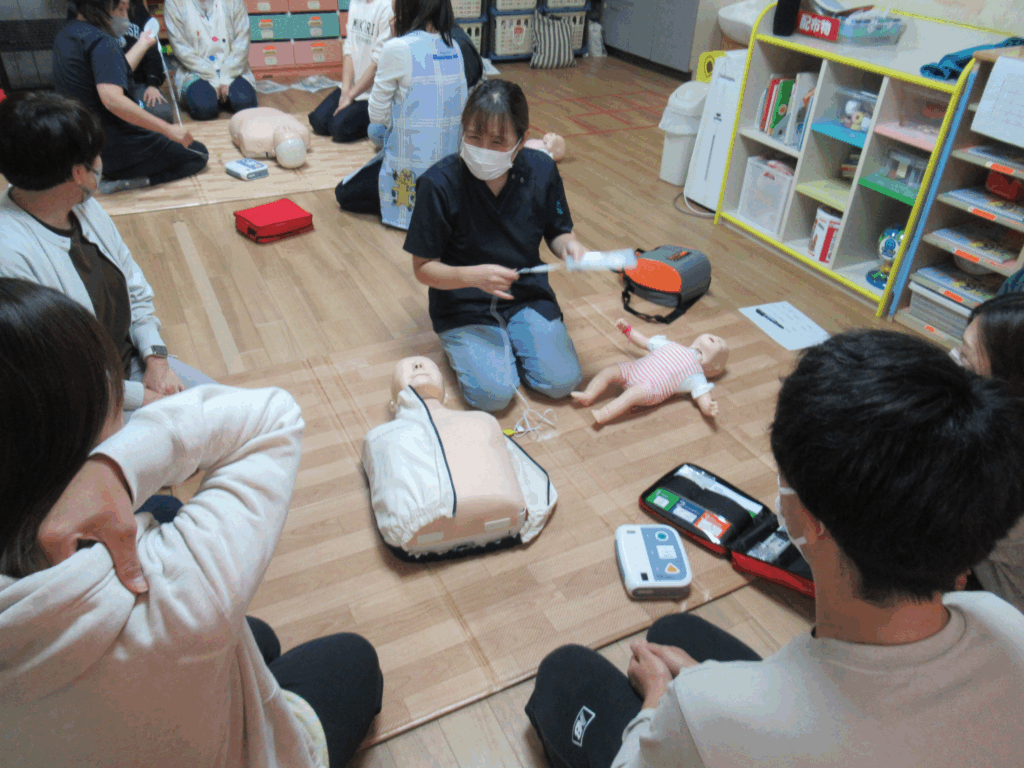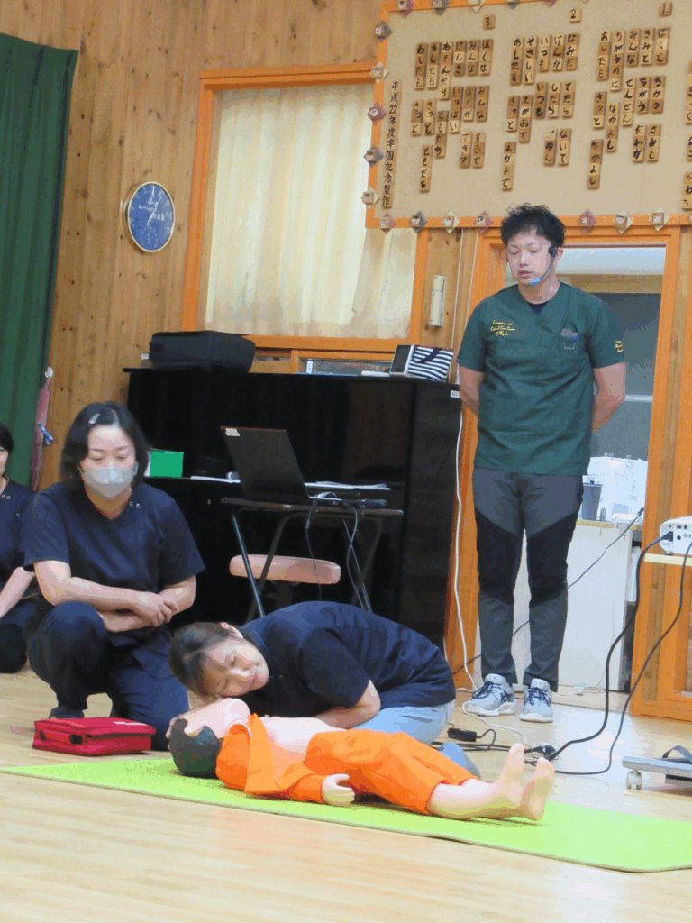 毎年、緊急時に備えスタッフみんなで、救命救急講習を受講しています。